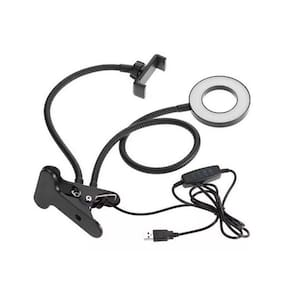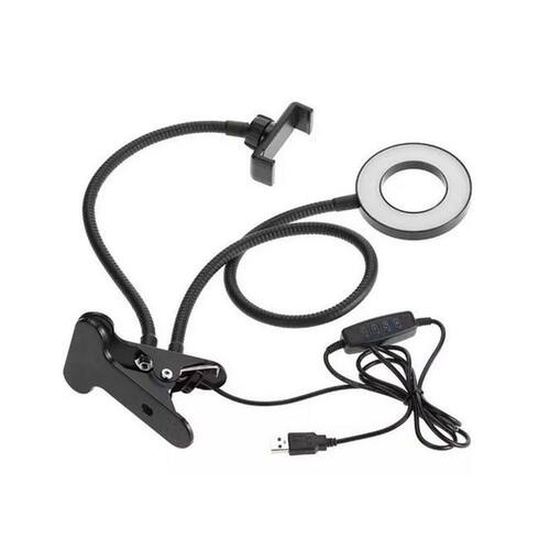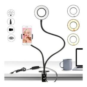 Anel Luz Iluminador Led Ring Light Suporte Celular Para Vídeo Muito Procurado por maquiadores, Barbeiros, fotógrafos e etc, este modelo de Ring Light vai te proporcionar a iluminação perfeita para fotografar ou gravar seus trabalhos para rede social ou até mesmo se o conteúdo for enviado para seu canal por exemplo. Excelente para criar vídeos , seja com Smartphone ou computador. Possui configurações de matiz e brilho para obter a iluminação certa. Basta escolher entre 3 modos de luz e 9 níveis de brilho para os seus usos preferidos - maquiagem, flat lay, fotos de selfie, vlogging de cenários escuros etc. Controles de fácil manuseio no cabo para ligar / desligar ou mudar para o modo de iluminação que você preferir. Pode ser Utilizado como luminária de mesa. Fotos meramente ilustrativas. Especificações: Modelo: Professional Live Stream Peso: 480g 3 modos de luz branca, amarela e mista e 9 níveis de brilho Potencia: 12w Material: Aço e plástico Abs Cabo usb aproximadamente: 1,20m Altura máxima aproximada: haste ring light 61,5 cm e haste Smartphone 34,5 cm Diâmetro aproximado do ring light: 8,5 cm Compatibilidade: Largura máxima aproximada do suporte telefone é de 8,6 cm Conexões: Usb 5V Itens inclusos: 1 Iluminador ring light com suporte articulado de mesa Live Stream para celular Smartphone com controle 1 Suporte para o celular Smartphone Ean: 7822808020676
