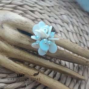 Uma anel lindo todo trabalhado em cachos de madrepérolas verdadeiras na cor natural com minis cristais na cor branco off.