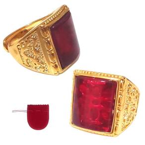 Anel Masculino Dourado Pedra Vermelha Banhado Regulável