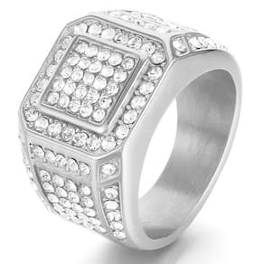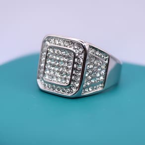 Este anel masculino é feito em aço inoxidável, garantindo durabilidade e resistência ao desgaste diário. Ele apresenta um design robusto e moderno, com várias zircônias incrustadas, adicionando brilho e elegância à peça.