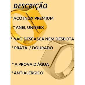 Anel masculino retangular chapa 8mm achatado aço inox prata dourado a prova d'água premium Cor: silver Tamanho: 19 Anel masculino retangular chapa 8mm achatado aço inox prata dourado a prova d'água premium Anel masculino é uma ótima opção para ficar na moda e dar um up no visual. Com material de aço inox, é perfeito para todas as ocasiões. Ideal também para presentear um amigo ou namorado. Anel aço inox, não descasca e não enferruja, podendo usar diariamente. ===================================== Fotos reais do produto na galeria Modelo a prova d'água, podendo usar em piscinas e praias, não descasca, não escurece, não perde a cor Detalhes técnicos: Marca: visujóias Modelo: anel masculino minimalista Incluso: 1 unidade anel masculino Material: aço inoxidável. Código do produto sku : 3529 : 6 meses. Todas as peças possuem tratamento antialérgico. =============================================================================== P:minha compra é segura R:toda compra que é feita aqui está em ambiente seguro, isso significa que se caso ocorra algum imprevisto faremos o estorno de seu pagamento. R: sim. P: produto é a prova d'água R: sim, pode usar em piscinas e praias que não escurece. P: tem R: sim, todos os nossos produtos tem de 6 meses, contra defeitos de fabricação. Todas as informações de cuidados são enviados junto com o produto. P: posta em quanto tempo P: posso trocar se não servir R: sim, enviamos nosso contato junto com o produto para orientação sobre troca. P: posso devolver se não gostar R: sim, caso não goste do produto é só entrar em contato conosco que iremos orientá-lo como efetuar a devolução. Dúvidas Pergunte à vontade, estamos aqui. ficaremos felizes em responder rapidamente. Aguardamos sua compra e estamos ao seu dispor :