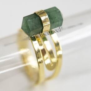 Anel Micro Pontinha Pedra Quartzo Verde Bi Ponta Aro Ajustavel Dourado, Anel Pedra Quartzo Verde Natural com lapidação Manual Bi terminado Sextavado a montagem é com aro ajustavel ao dedo reforçado com banho em Flash dourado, Lindo brilho serve do 10 ao 30. Bi terminado são pontas com dupla terminação, ideais para usar no recebimento e envio de energia ao mesmo tempo, criando ponte energetica entre os cristais ao redor.