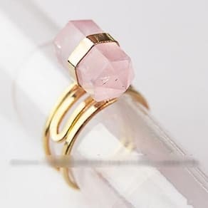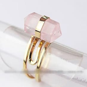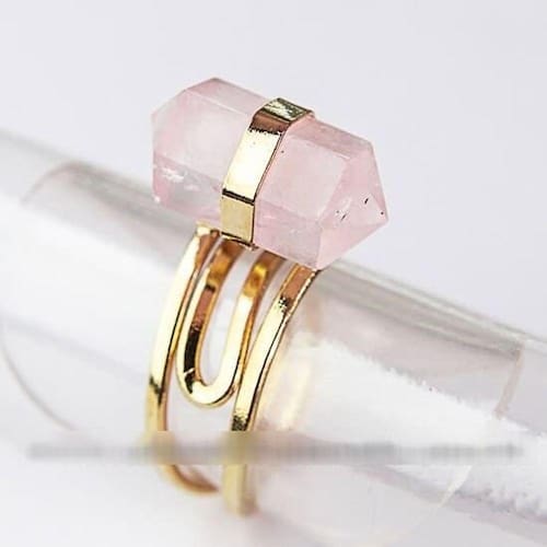 Anel Micro Pontinha Quartzo Rosa Bi Ponta Aro Ajustavel Dourado, Anel Pedra Quartzo Rosa natural de Garimpo com lapidação Manual Bi terminado Sextavado a montagem é com aro ajustavel ao dedo reforçado com banho em Flash dourado, Lindo brilho serve do 10 ao 30. Bi terminado são pontas com dupla terminação, ideais para usar no recebimento e envio de energia ao mesmo tempo, criando ponte energetica entre os cristais ao redor.