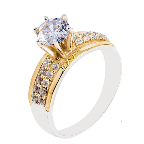Anel Noivado Solitário Prata 925 Cravejado Com Filete De Ouro
