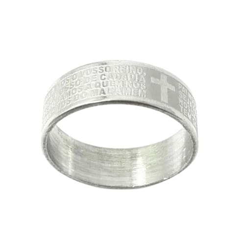 Este anel apresenta um design elegante e significativo, confeccionado em aço inox prateado, garantindo durabilidade e resistência à corrosão. O anel é gravado com a oração do Pai Nosso, proporcionando um símbolo constante de fé e espiritualidade. Disponível em uma variedade de tamanhos, de 16 a 22, este anel , tornando-o adequado para muitos usuários. Este anel é ideal para uso diário ou como um presente significativo para alguém especial, permitindo que a pessoa carregue consigo uma expressão tangível de sua fé e devoção. A combinação do material resistente e o design com a oração gravada fazem deste anel uma peça duradoura e espiritualmente inspiradora.