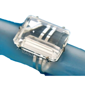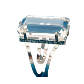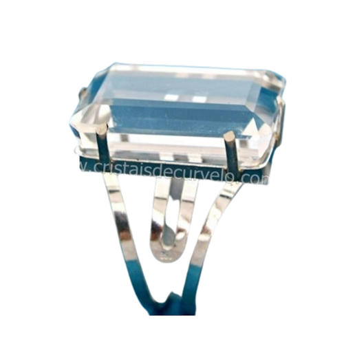 Anel Prata 950 Pedra Cristal Extra natural e exótica lapidado manual Retangulo Montagem também manual Prata de lei aro ajustável em qualquer dedo joia reforçada com 4.1 Gr de Prata Com pedra Brasileira mineral autentico de garimpo