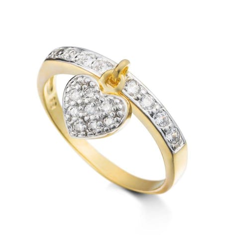 Anel Semi Joia Folheado em Ouro com Pingente de Coração Cravejado em Micro Zircônias Brancas e detalhes em RódioAnel Banhado a Ouro 18k e acabamento em Ródio com Micro Zircônia e Pingente Coração. Delicado e perfeito para embelezar e completar seu estilo
