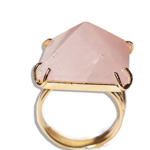 Anel Piramide Baseada na Grande Queops Pedra Quartzo Rosa Lapidação é Manual tipo artesanal com excelente brilho a montagem é com aro ajustavel ao dedo reforçado banhado dourado, Lindo brilho serve do 10 ao 30