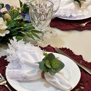 Design Exclusivo: Com um formato elegante inspirado nas folhas de eucalipto, este porta guardanapo traz um toque natural e moderno à sua decoração. As folhas detalhadas e realistas adicionam um charme especial, criando uma atmosfera vibrante e aconchegante. Materiais de Qualidade: Confeccionado com folhagem sintética de alta durabilidade, o porta guardanapo é resistente e fácil de manter. Seu acabamento sofisticado garante que cada unidade seja única e encantadora. Kit com 10 Unidades: Perfeito para reuniões familiares, jantares com amigos ou eventos especiais, o kit contém 10 unidades, permitindo que você decore sua mesa de forma harmônica e criativa. Cada porta guardanapo mantém o mesmo padrão de qualidade e elegância. Tamanho Ideal: O tamanho foi projetado para se ajustar perfeitamente ao seu guardanapo, garantindo funcionalidade e beleza. Ele é versátil e se adapta a diferentes arranjos de mesa, oferecendo um toque de natureza em qualquer estilo. Toque de Sofisticação: Disponível em um tom verde suave, o porta guardanapo Eucalipto combina com diversos estilos de decoração, desde os mais modernos até os mais rústicos, sendo ideal para almoços, jantares ou celebrações especiais.