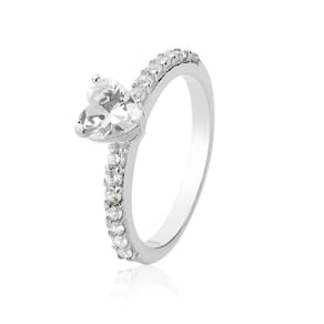Anel de prata 925 solitário coração cravejado com zircônia - anti alérgico