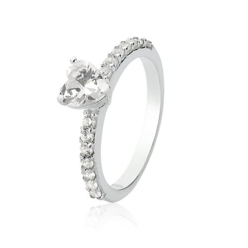 Anel prata 925 aparador solitário coração cravejado - tam.10