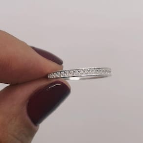 O Anel Prata 925 Aparador Aliança Cravejado Zircônia N.24 é perfeito para quem busca uma joia delicada e sofisticada. Produzido em prata de lei 925, esse anel possui um acabamento polido à mão, garantindo um brilho intenso e duradouro. Com uma espessura de 2mm, ele é leve e confortável de usar.