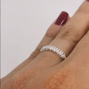 Anel de prata 925 meia aliança cravejado com zircônia - 2mm - anti alérgico