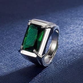 Anel Prata 925 Pedra Verde Cor Esmeralda Regulável + Saco Veludo