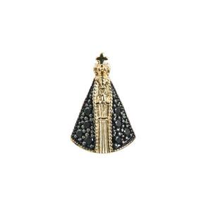 Anel em Prata Revestido com Ouro 18K Meia Aliança com NSra. Aparecida e Zircônia Branca
