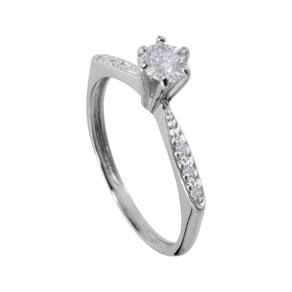Anel em Prata Solitário 2mm com Zircônias Brancas 4mm