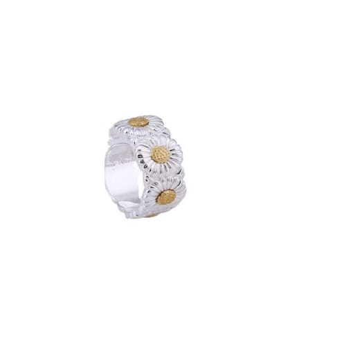 Anel prateado ajustável flor branca com amarela margarida y4333