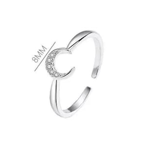 Material: liga metálica Cor: prateado Diâmetro: 17cm Largura da superfície da lua: 8mm Estilo: moderno, clássico, delicado Tipo de anel: ajustável