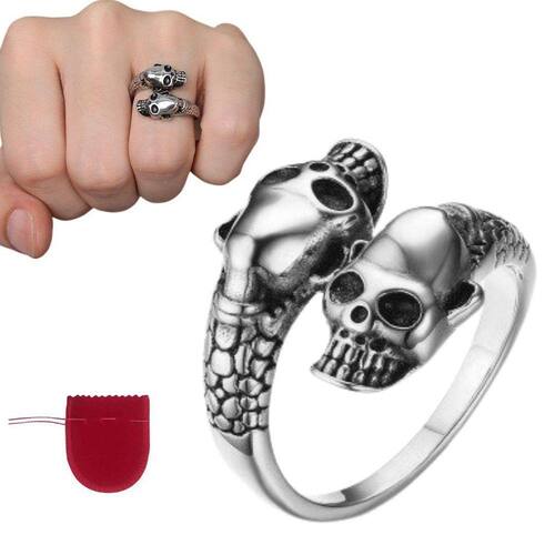 Anel Prateado Caveira Crânio Regulável + Saco Veludo Anel Ajustável você pode apertar ou alargar, caso seja necessário Perfeito para todas as ocasiões, inclusive para presentear, já que não precisa saber exatamente o tamanho pra comprar.Por ser ajustável cabe perfeitamente em qualquer circunferência anelar.Bela peça, acessório imponente, com fino acabamento.Peso líquido: cerca de 7g Acompanha saquinho de veludo.