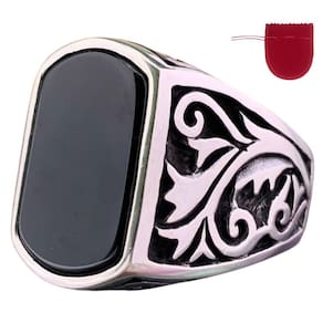 Anel Prateado Preto Esmaltado Trabalhado Regulável Anel Prateado Ajustável você pode apertar ou alargar, caso seja necessário Perfeito para todas as ocasiões, inclusive para presentear, já que não precisa saber exatamente o tamanho pra comprar. Por ser ajustável cabe perfeitamente em qualquer circunferência anelar. Bela peça com ótimo acabamento. Largura de superfície: 20mm Peso líquido: cerca de 8g