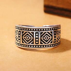 Anel Prateado Tribal Geométrico Delicado Regulável Anel PrateadoAjustável você pode apertar ou alargar, caso seja necessário Vem ajustado no tam 17, cabe até 20, 21. Perfeito para todas as ocasiões, inclusive para presentear, já que não precisa saber exatamente o tamanho pra comprar. Por ser ajustável cabe perfeitamente em qualquer circunferência anelar. Largura de superfície: 10mm Peso líquido: cerca de 6g