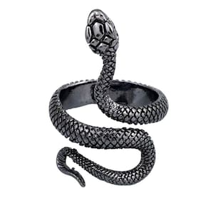 Anel Preto Prateado Cobra Ajustável Serpente Snake Punk Rock Lindo Anel Cobra Ajustável pode apertar ou alargar de acordo com a espessura do seu dedo Perfeito para todas as ocasiões, inclusive para presentear, já que não precisa saber exatamente o tamanho pra comprar. Por ser ajustável cabe perfeitamente em qualquer circunferência anelar. Acompanha saquinho de veludo e . Medidas aproximadas do produto - Comprimento: 17 cm - Altura: 5 cm - Largura: 12 cm - Peso: 10 g Marca: Pjk store Ean: 7892222226312