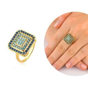 Anel Quadrado Degradê Cravejado Zircônias Coloridas Dourado