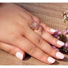 Anel Quadrado Degradê Cravejado Zircônias Coloridas Dourado