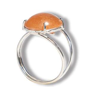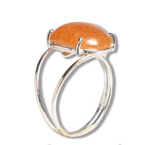 Anel Quartzo Tangerina Cabochão Oval 15mm Ajustável Prata 950, Anel em Prata 950 Pedra natural e exotica lapidado Cabochão Oval Liso Montagem manual Prata de lei com aro ajustavel em qualquer dedo joia reforçada com pedra Brasileira mineral autêntico de garimpo