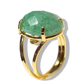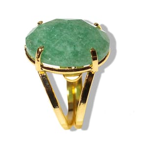Anel Pedra Quartzo Verde Gema Facetada Montagem em Dourado com aro Ajustável, Anel dourado Gema de Quartzo Verde natural lapidação manual Facetado Montagem também manual não perca a chance de adquirir o seu ainda hoje! DETALHES DA PEDRA: NOME DAS PEDRAS: Quartzo Verde Natural COR DAS PEDRAS: VIDE FOTO CORTE DAS PEDRAS: Gema facetado oval MEDIDA DAS PEDRAS: 20 x 15mm MEDIDA DO ARO: Ajustável PESO TOTAL DA JÓIA: 25ct aproximadamente Por ser pedra natural podem apresentar variações em suas tonalidades e grafismos Há também a possibilidade de ocorrerem pequenas inclusões que irão se assemelhar a fissuras, mas que são normais de minerais autentico de garimpo Hidratação oleo mineral Propriedades do quartzo verde: O Quartzo Verde é conhecido por estimular a confiança e a coragem, promovendo uma sensação de segurança e determinação. Esta pedra também é valorizada por seu poder de harmonizar as energias do corpo e da mente, auxiliando no equilíbrio emocional e trazendo uma sensação de paz e bem-estar. Marca: CristaisdeCurvelo