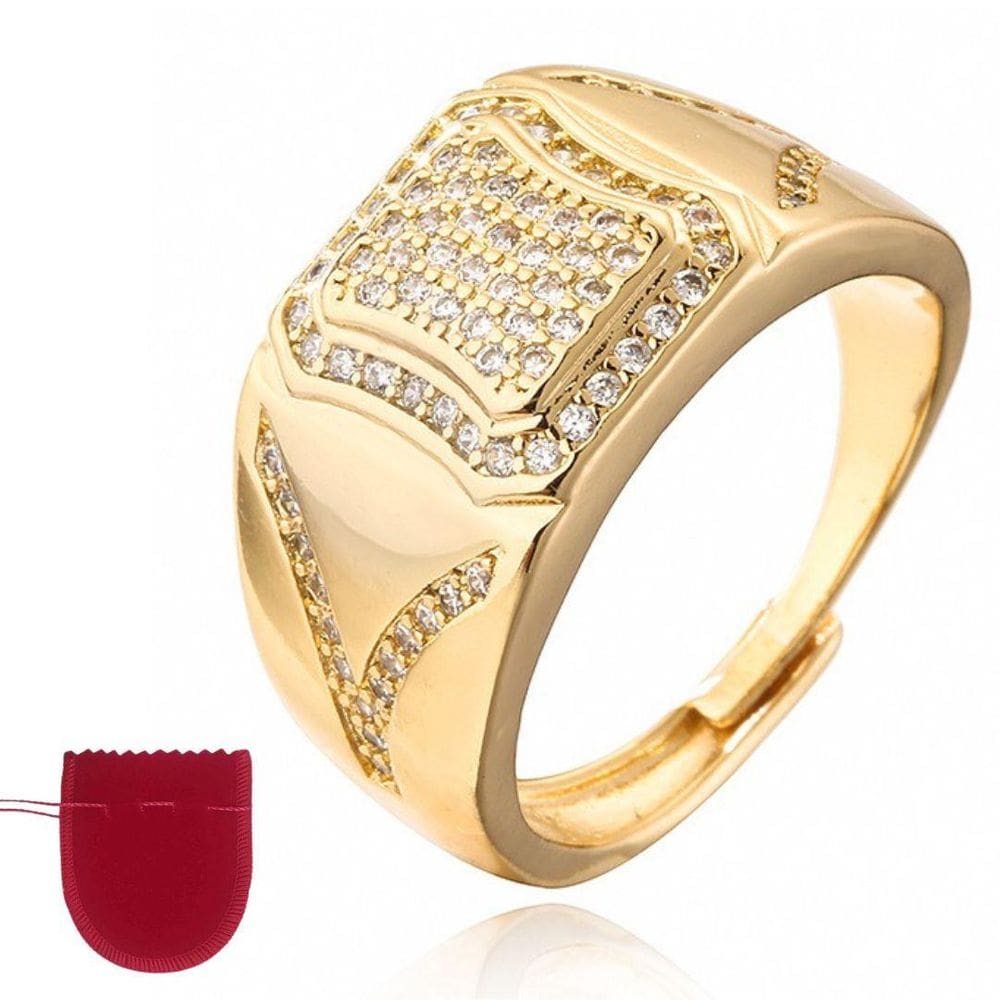 Anel Trabalhado Com Zircônias Cristais Banhado a Ouro
