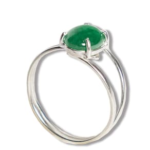 Anel Solitario Jade Verde Oval 10mm Aro Ajustável Prata 950, Anel em Prata 950 Pedra Jade verde natural lapidação Cabochão Oval Liso Montagem manual Prata de lei com aro ajustavel em qualquer dedo joia reforçada com pedra Brasileira mineral de garimpo