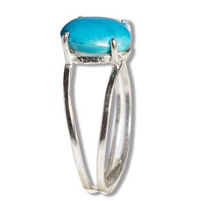 Anel Solitário Turquesa Azul Oval 10mm Ajustável Prata 950, Anel em Prata 950 Pedra natural e exotica lapidado Cabochão Oval Liso Montagem manual Prata de lei com aro ajustavel em qualquer dedo joia reforçada com pedra Brasileira mineral autêntico de garimpo