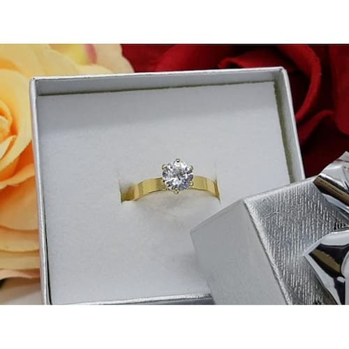Anel Solitário Zircônia Banhado Ouro - Semi Joia