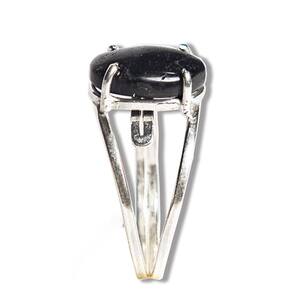 Anel Turmalina Preta Cabochão Oval 10mm Ajustável Prata 950, Anel em Prata 950 Pedra natural e exotica lapidado Cabochão Oval Liso Montagem manual Prata de lei com aro ajustavel em qualquer dedo joia reforçada com pedra Brasileira mineral autêntico de garimpo