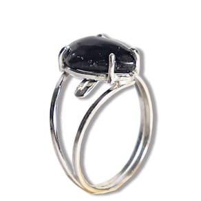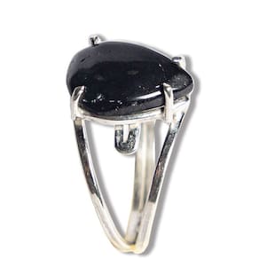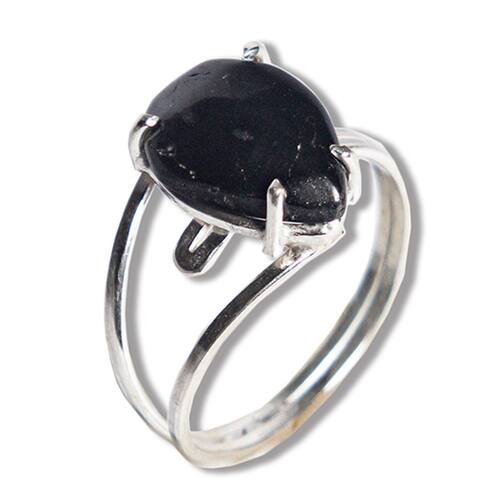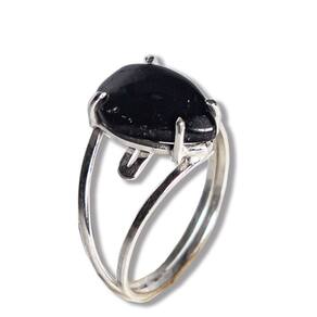 Anel Turmalina Preta Gota Lisa 14mm Aro Ajustável Prata 950, Anel em Prata 950 Pedra natural e exotica lapidado Cabochão Gota Lisa Montagem manual Prata de lei com aro ajustavel em qualquer dedo joia reforçada com pedra Brasileira mineral autêntico de garimpo