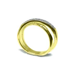 Anel x Trançado Semijoia Banho De Ouro 18k Cravação De Zircônias Detalhe Em Ródio - Aro: 24