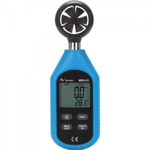 O MDA-01 é um mini-anemômetro digital de uso interno, seguro e estável. Nivel de Poluição: 2. Amplamente utilizado em mineração, setor elétrico, ferro e aço, petroquímico, economia de energia, navegação, indústria de ventilação, exaustores, esportivo e outros. Display:principal 4 Dígitos (9999 Contagens) Temperatura:-10°c ~ 50ºC Alimentação:3 x 1,5V AAA Dimensões: 160mm x 50mm x 28mm Peso: 118g