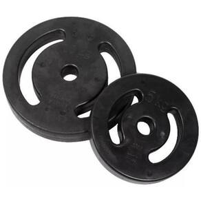 Anilha 10kg Injetada Dúctil Para Treino Academia Peça 10kg As anilhas injetadas são as mais resistentes do mercado seja para uso em casa ou na academia. Possui duas pegadas conferindo maior segurança e conforto facilitando o manuseio no momento da colocação da anilha na barra ou no equipamento. As Anilhas Injetadas são fabricadas com alma de ferro fundido e revestidas com uma grossa camada de PVC Policloreto de Vinila . Elas não enferrujam e não descascam pois não é tinta, amortecem impactos e também não geram ruídos no treino. Material: PVC Policloreto de Vinila . Acabamento: PVC cor preta. : 60 dias contra defeito de fabricação. Diâmetro do furo interno: 3 cm. Marca: Não Informado