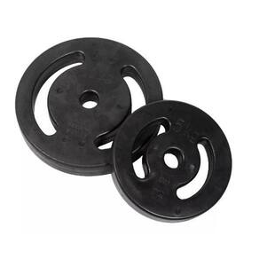 Anilha 1kg Injetada Dúctil Para Treino Academia Peça 1kg As anilhas injetadas são as mais resistentes do mercado seja para uso em casa ou na academia. Possui duas pegadas conferindo maior segurança e conforto facilitando o manuseio no momento da colocação da anilha na barra ou no equipamento. As Anilhas Injetadas são fabricadas com alma de ferro fundido e revestidas com uma grossa camada de PVC Policloreto de Vinila . Elas não enferrujam e não descascam pois não é tinta, amortecem impactos e também não geram ruídos no treino. Material: PVC Policloreto de Vinila . Acabamento: PVC cor preta. : 60 dias contra defeito de fabricação. Diâmetro do furo interno: 3 cm. Marca: Não Informado