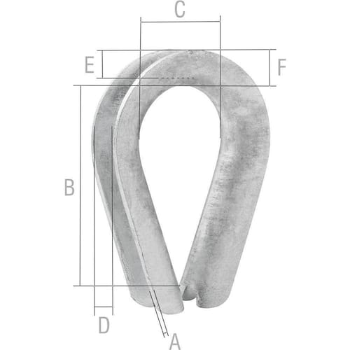 Aplicação Comercial: Facilita a confecção de laços e ilhoses em cabos de aço, protege contra atrito e é indicada apenas para aplicações leves, sem uso em tração, elevação ou estaiamento.
