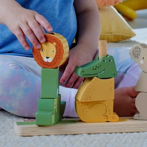 Itens Inclusos: 1 base empilhável; 9 blocos de madeira;