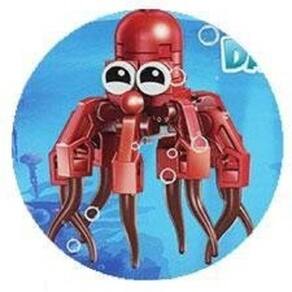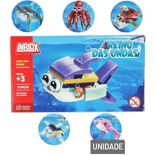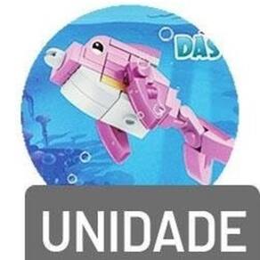 São 12 modelos diferentes para colecionar, cada um apresenta uma quantidade de peças e uma forma lúdica de animal marinho.