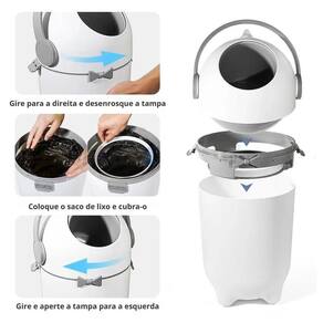 Rotação de 90 Graus: Fácil acesso de diferentes ângulos. Abertura Lateral com Uma Mão: Operação simples e eficiente. Tambor Independente com Bloqueio de Odores: Mantém o ambiente fresco. Estrutura de Cinto com Fivela Dupla: Espaço mais selado. Compatível com Sacos de Lixo Comuns: Prático e econômico.