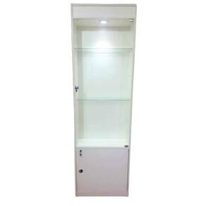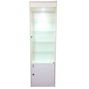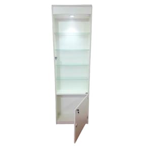 Anita Slim com Armário e Porta Com Armário e Porta de Vidro indicado para lojas que queiram proteger os produtos com porta e chave. INDICADO PARA: Lojas em geral, Residências: Colecionadores, MATERIAL: 100% MDF TX 15mm: o máximo em qualidade, durabilidade e resistência a riscos. Lâmpada led com bi volt 110v ou 220v. 4 Prateleiras removíveis em vidro temperado 5x mais resistente que o vidro comum. Porta de vidro com chave Armário em baixo para DIMENSÕES DA PRATELEIRA: Comprimento: 64cm, Altura: 210cm, Profundidade: 25cm, Distância entre as prateleiras: 28cm
