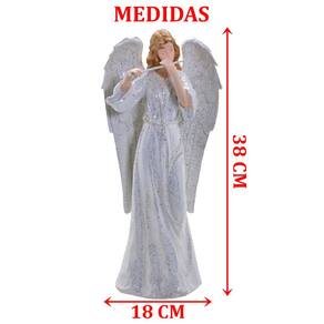 Anjo Decorativo Musico Flauta Em Resina Natal Enfeite 38cm -