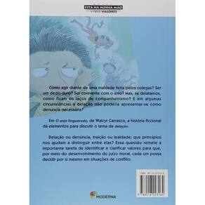 Série Está na Minha Mão! Viver Valores Está na Minha Mão! Viver Valores é uma série inovadora que alia literatura e reflexão moral. Apresenta questões sérias que envolvem temas morais e deixa para o jovem a opção de escolher entre uma solução ou outra. Os personagens são jovens que enfrentam problemas relativos a injustiça, delação, consumismo, inveja, amizades desfeitas, segredo, mentira, insegurança, agressividade... Ao discutir saídas juntamente com a classe, o professor estará ajudando a construir valores como liberdade, justiça, dignidade, respeito à vida. Narrativa ágil, sensível, com linguagem atraente, adequado à faixa etária. A história de Felipe e seu destino dá elementos para a discussão do tema da delação. Como agir diante do malfeito? Ser o dedo-duro dos colegas? Caso contrário, não seríamos coniventes com o erro? Mas se delatamos, como ficam os laços de companheirismo? E em algumas circunstâncias delação não poderia se apresentar como denúncia necessária? Delação ou denúncia, traição ou lealdade, que princípio nos ajudam a distinguir entre elas?