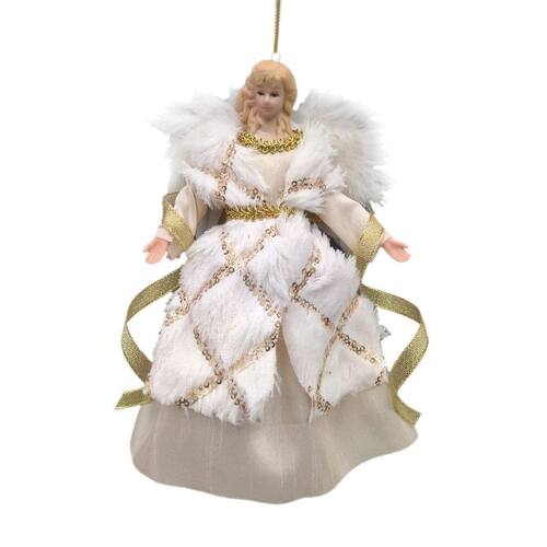 Anjo Topo Árvore Natal Creme - Decoração Pequeno para Casa 18 cm Eleve sua decoração natalina com o delicado Anjo Topo Árvore Natal Creme, com 18 cm de altura. Este enfeite elegante, em tons suaves de creme, é perfeito para adornar o topo de árvores menores ou para compor uma decoração natalina sutil e sofisticada. Ideal para ambientes residenciais e comerciais que buscam um toque de elegância e serenidade. Características do Produto: Dimensões: 18 cm de altura, 10 cm de comprimento, 10 cm de largura. Peso: 0,100 kg, leve e fácil de posicionar no topo da árvore. Material: Tecido de alta qualidade e resina resistente, garantindo durabilidade e um acabamento refinado. Design Clássico e Sofisticado: O tom creme traz uma sensação de elegância e tranquilidade, ideal para decorações natalinas mais discretas e sofisticadas. Detalhes Delicados: O anjo é cuidadosamente decorado, com trajes detalhados e expressões suaves que capturam a essência mágica e celestial do Natal.