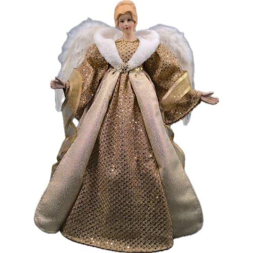 Anjo Topo Árvore Natal Gold - Enfeite para Casa Grande 60 cm Adicione um toque de sofisticação e brilho à sua decoração natalina com o Anjo Topo Árvore Natal Gold, com 60 cm de altura. Esta peça majestosa, em tom dourado luxuoso, é perfeita para adornar o topo da sua árvore de Natal, trazendo um visual elegante e festivo. Ideal para lares e ambientes comerciais que buscam uma decoração natalina de destaque e refinada. Características do Produto: Dimensões: 60 cm de altura, 20 cm de comprimento, 30 cm de largura. Peso: 0,500 kg, garantindo estabilidade no topo da árvore. Material: Tecido de alta qualidade e resina resistente, proporcionando durabilidade e um acabamento sofisticado. Design Luxuoso: O tom gold oferece um visual glamouroso, perfeito para criar uma atmosfera natalina rica em estilo e elegância. Detalhes Cuidadosos: O anjo é ricamente decorado, com trajes detalhados e expressões suaves que capturam a essência mágica e celestial do Natal.