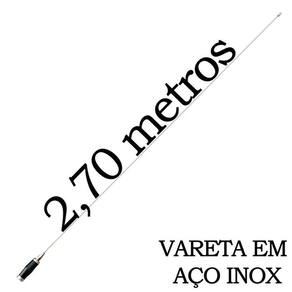 ESPECIFICAÇÕES TÉCNICAS: Código do produto: b-2003p Frequência: 25 a 54 mhz Ganho: 2.23dbi Vswr: menor que 1.5:1 Impedância: 50 ohms Potência máxima: 500w Largura de faixa: 3.5 mhz Material: aço inox, latão cromado e poliuretano Peso do produto: 590g Dimensões do produto: 2.790mm